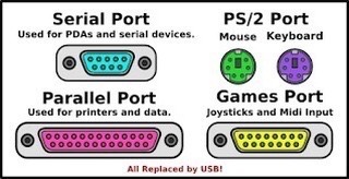 منافذ PS/2: يحتوي على فتحتين يتم من خلالهما توصيل لوحة المفاتيح والفأرة، الشكل الخارجي لهما متشابه بينما اللون يختلف.